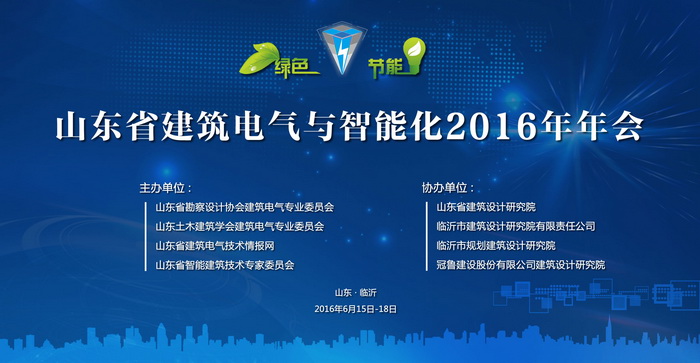 以“綠色、節(jié)能”為主題的山東省建筑電氣與智能化2016年年會(huì)暨技術(shù)交流大會(huì)2016年6月15日-18日在美麗的革命老區(qū)­­--臨沂勝利召開(kāi)。