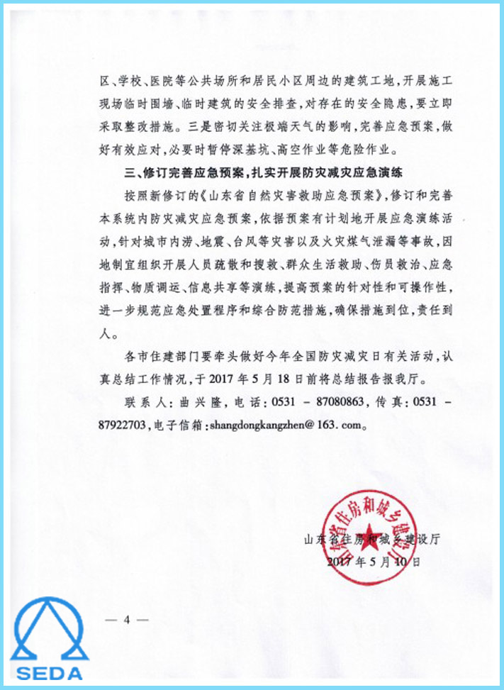 山東省住房和城鄉(xiāng)建設廳關于做好2017年防災減災日有關工作的通知