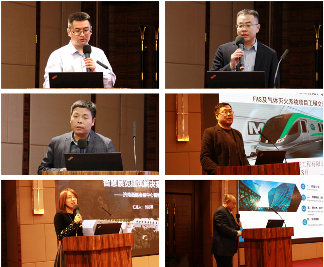 技術(shù)交流環(huán)節(jié),山東省建筑設(shè)計(jì)研究院有限公司六分院電氣主任任立全、同方德誠(山東)科技股份公司總經(jīng)理翟兆國、山東大衛(wèi)國際建筑設(shè)計(jì)有限公司智能設(shè)計(jì)分院院長張濤、山東宏雁電子系統(tǒng)工程有限公司技術(shù)總工譚永利、同圓設(shè)計(jì)集團(tuán)智能化設(shè)計(jì)研究所所長劉志燕、山東華埠特克智能機(jī)電工程有限公司副總經(jīng)理廉頗等分享交流了獲金獎(jiǎng)、一等獎(jiǎng)的項(xiàng)目。
