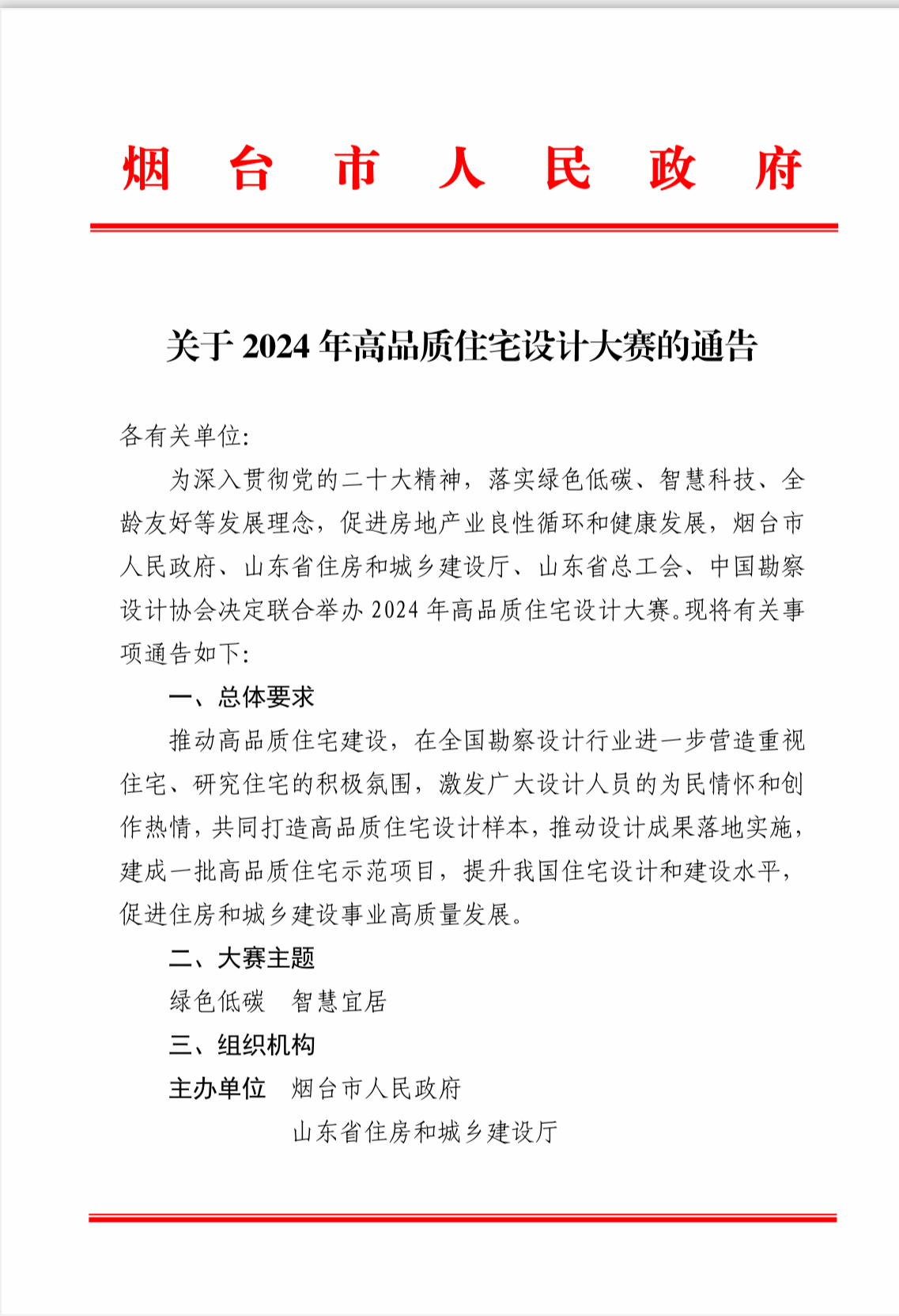 《關(guān)于2024年高品質(zhì)住宅設(shè)計大賽的通告》
