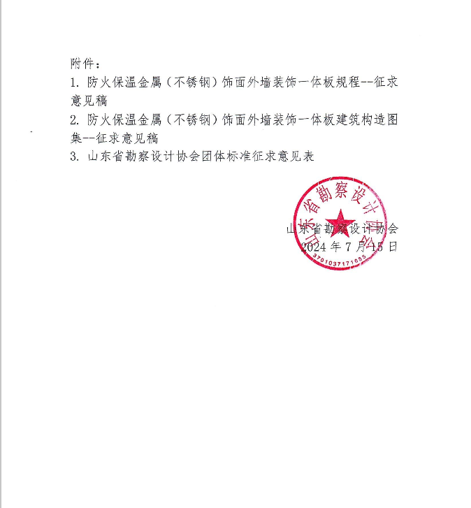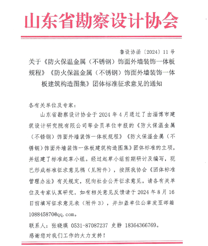 關(guān)于《防火保溫金屬(不銹鋼)飾面外墻裝飾一體板規(guī)程》《防火保溫金屬(不銹鋼)飾面外墻裝飾一體板建筑構(gòu)造圖集》團體標(biāo)準(zhǔn)征求意見的通知