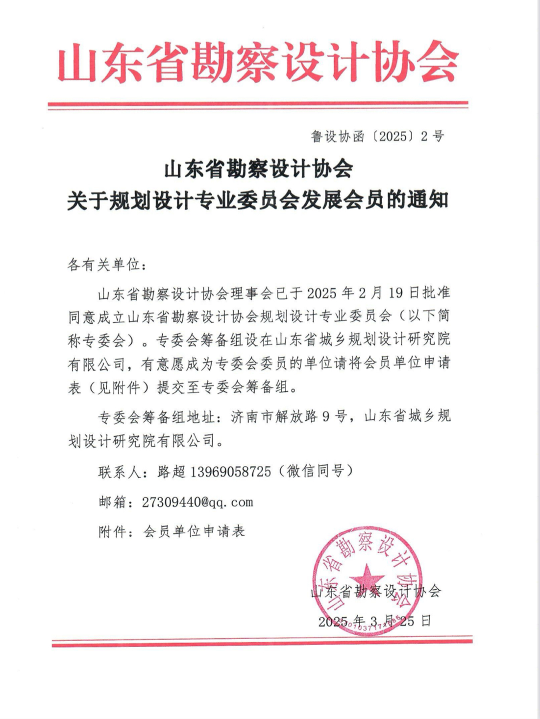 附件:《山東省勘察設(shè)計(jì)協(xié)會(huì) 關(guān)于規(guī)劃設(shè)計(jì)專業(yè)委員會(huì)發(fā)展會(huì)員的通知》