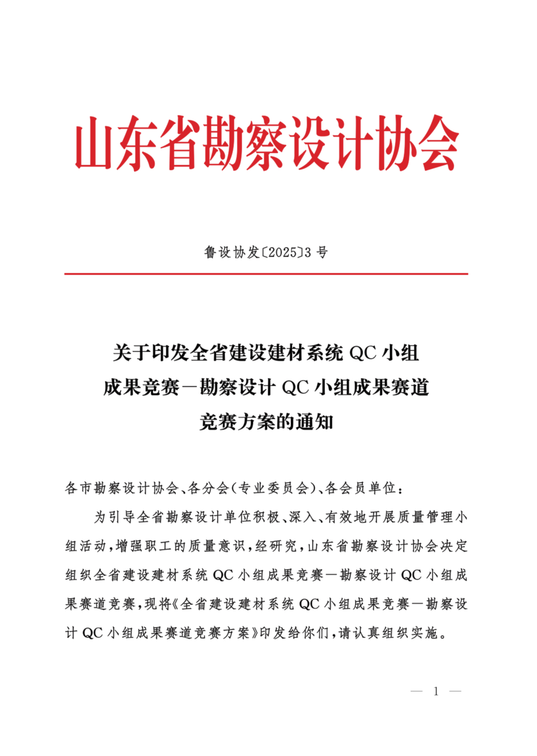 關(guān)于印發(fā)全省建設(shè)建材系統(tǒng) QC小組成果競賽-勘察設(shè)計(jì) QC小組成果賽道競賽方案的通知