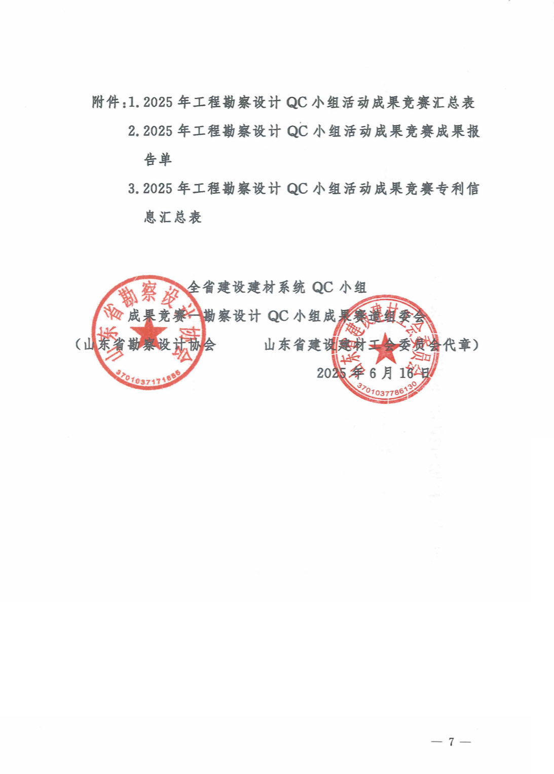 附件:1.2025年工程勘察設(shè)計(jì)QC小組活動(dòng)成果競賽匯總表