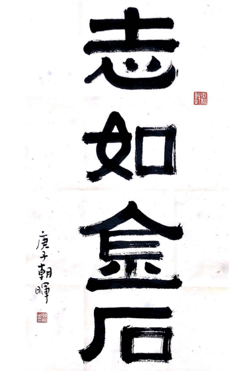 除了繪畫,侯朝暉還酷愛書法,看到這么多“最美逆行者”奮戰(zhàn)在抗疫一線,他寫下“志如金石”四個字,贊美這些最可愛的人。