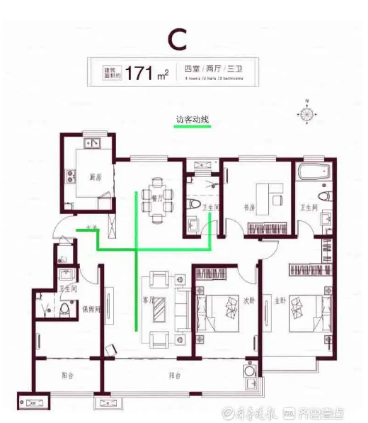 《后漢書·仲長(zhǎng)統(tǒng)傳》:“安居樂(lè)業(yè),長(zhǎng)養(yǎng)子孫,天下晏然。”往小了說(shuō),一個(gè)家庭有一個(gè)安定的居所,是子孫后代安心工作和生活的保障;往大了說(shuō),一個(gè)國(guó)家的公民能居有定所,老有所依,是整個(gè)國(guó)家安定發(fā)展的基礎(chǔ)。坊間一直流傳著一句笑話就是“丈母娘推動(dòng)了中國(guó)房地產(chǎn)行業(yè)的飛速發(fā)展”,雖然是玩笑話但也多少反映了房子承載著中國(guó)人血脈里的歸屬感。世俗的中國(guó)人都避不開的問(wèn)題就是買房,而買房動(dòng)輒幾百萬(wàn)的支出也確實(shí)是一個(gè)家庭非常重大的決策了,一定要謹(jǐn)慎再謹(jǐn)慎,仔細(xì)挑選各方面都心儀的房子。作為九零后代表,我跟大家談?wù)勎倚哪恐械暮梅孔印:芏嗯笥言谫I房的時(shí)候比較關(guān)心的就是價(jià)格、地段、戶型、樓層、環(huán)境等,一間舒適的房子,干凈整潔的室外環(huán)境、貼心周到的物業(yè)服務(wù)、低密度的空間是錦上添花,實(shí)際居住起來(lái)最要緊的還是戶型,而戶型最重要的則是動(dòng)線。一所好房子不在于戶型多么大,裝修多豪華,零零碎碎的日子過(guò)起來(lái),舒服才是最重要的。而戶型動(dòng)線影響著人的日常生活起居、大小事情,如果動(dòng)線不合理,就造成住戶日常生活行動(dòng)在各個(gè)功能區(qū)間交叉行走,影響其他家庭成員的活動(dòng),還造成了空間的浪費(fèi),以現(xiàn)在的房?jī)r(jià)浪費(fèi)一平米那損失的直接就萬(wàn)元起了。可能好多朋友并不明白或者并沒有注意過(guò)戶型動(dòng)線是什么。所謂戶型動(dòng)線,是指根據(jù)住宅結(jié)構(gòu)分布而成的主要活動(dòng)路線。不同的區(qū)域有不同的動(dòng)線設(shè)計(jì)方式,主要包括居住動(dòng)線、家務(wù)動(dòng)線和訪客動(dòng)線,不同的動(dòng)線功能也不同。我以四建一個(gè)項(xiàng)目的戶型給大家做如下講解。