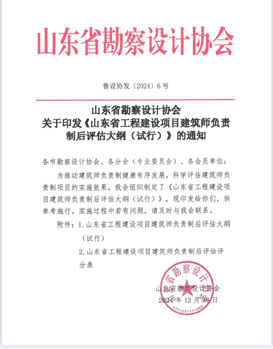 附件:山東省勘察設計協(xié)會 關(guān)于印發(fā)《山東省工程建設項目建筑師負責制后評估大綱(試行)》的通知